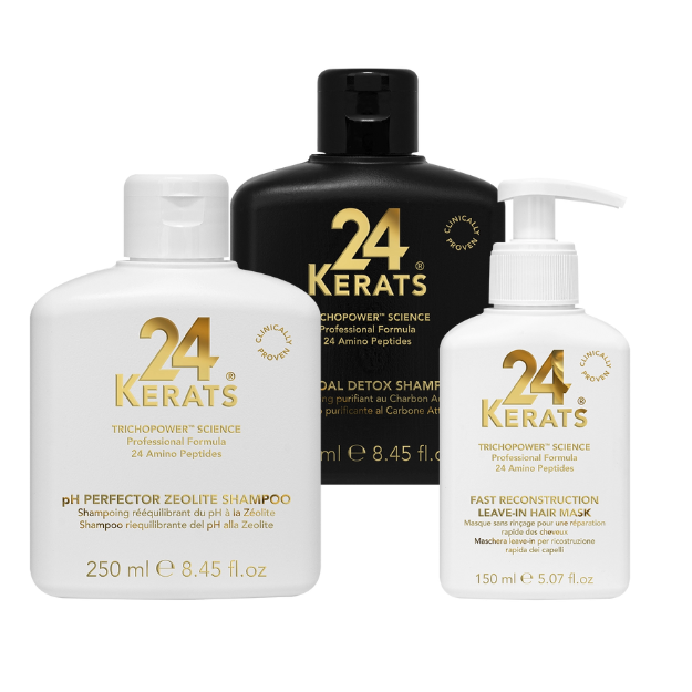 Odkryj sekret 24 KERATS® z zaawansowaną i innowacyjną TRICHOPOWER™ SCIENCE, która działa biomimetycznie w zaledwie 3 minuty, dzięki synergii 24 peptydów aminowych. Twoje włosy odzyskają pierwotne piękno, zdrowie i niesamowity blask – już po jednej aplikacji.